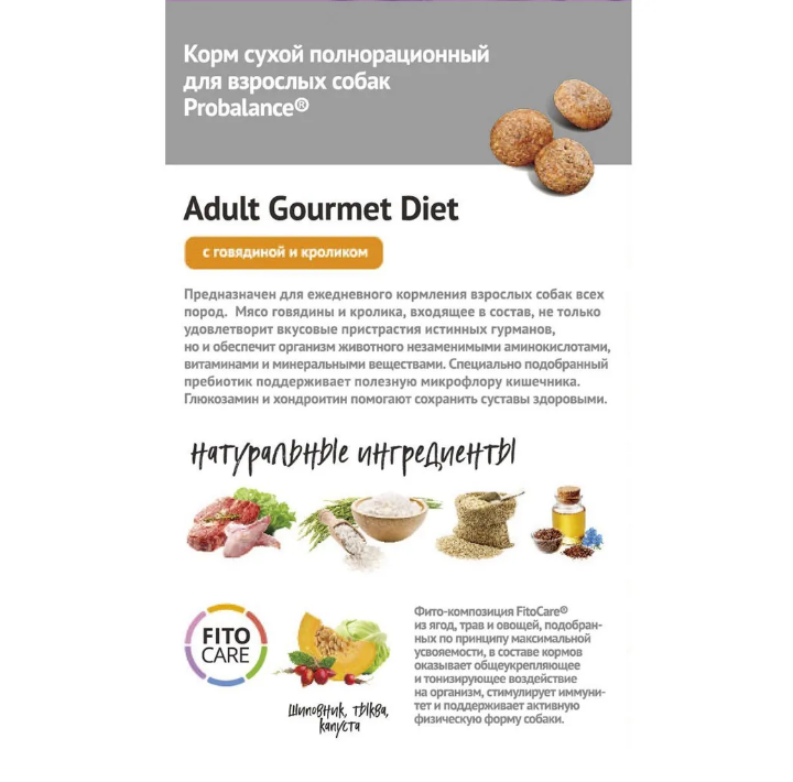 ProBalance Gourmet Diet Adult Beef & Rabbit - Сухой корм для собак гурманов с Говядиной и Кроликом 15 кг