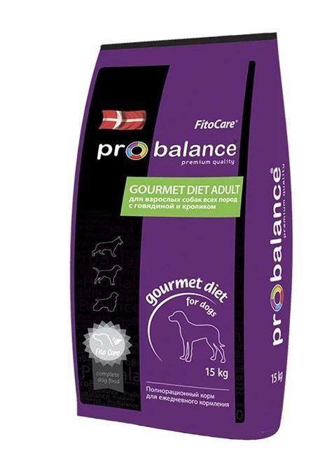 PROBALANCE Gourmet diet Корм для собак с Говядиной и Кроликом 15кг