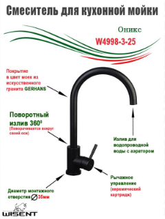 Смеситель для кухни (черный) WISENT W4998-3-22