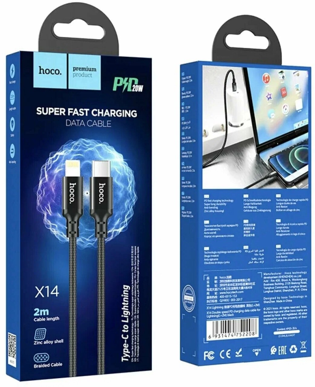 Кабель USB-C HOCO X14 Double speed Type-C - Lightning, 2 м, черный