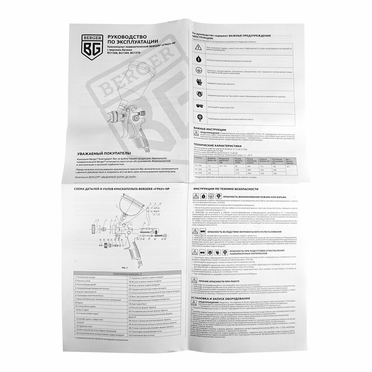 Краскораспылитель BERGER HP 1.8 мм «грау» Верхний бак BG1369 интересное: