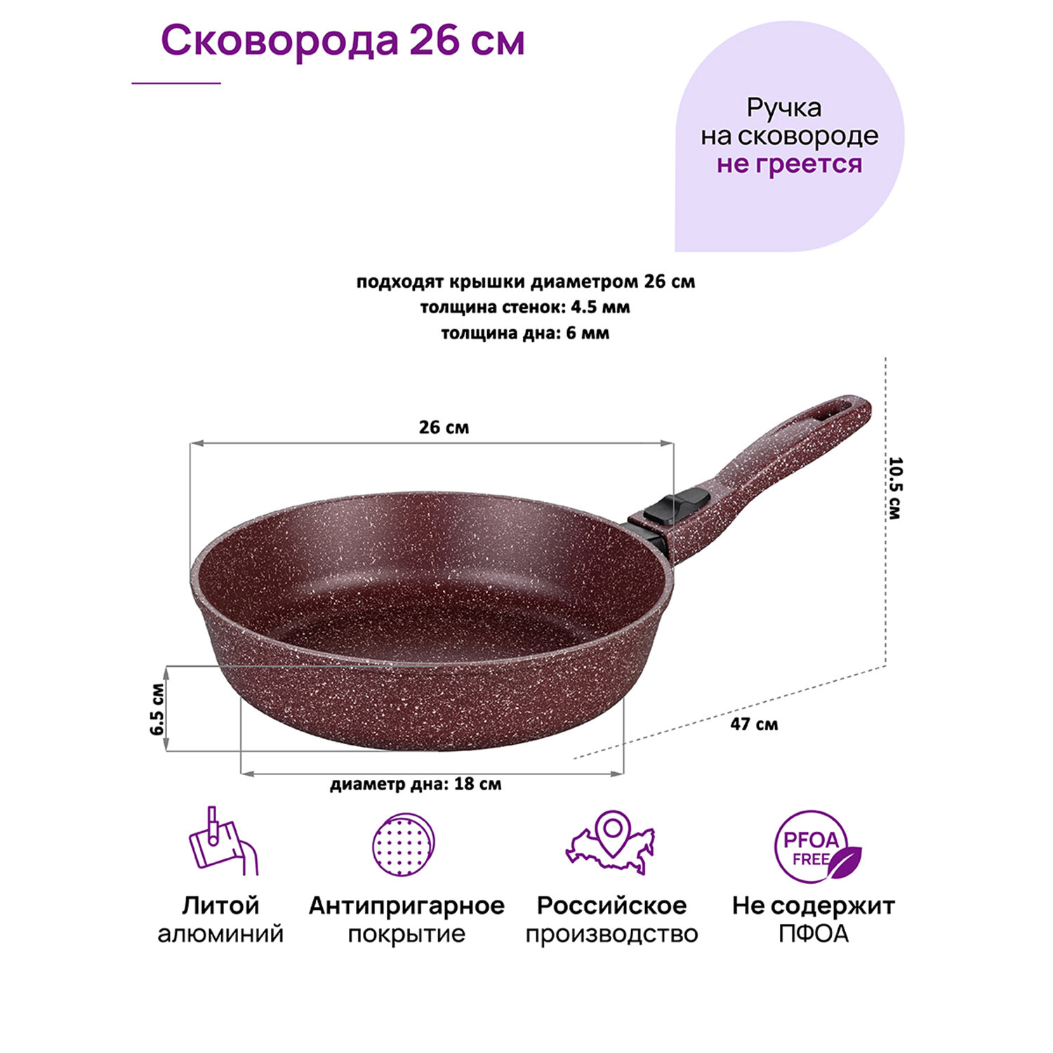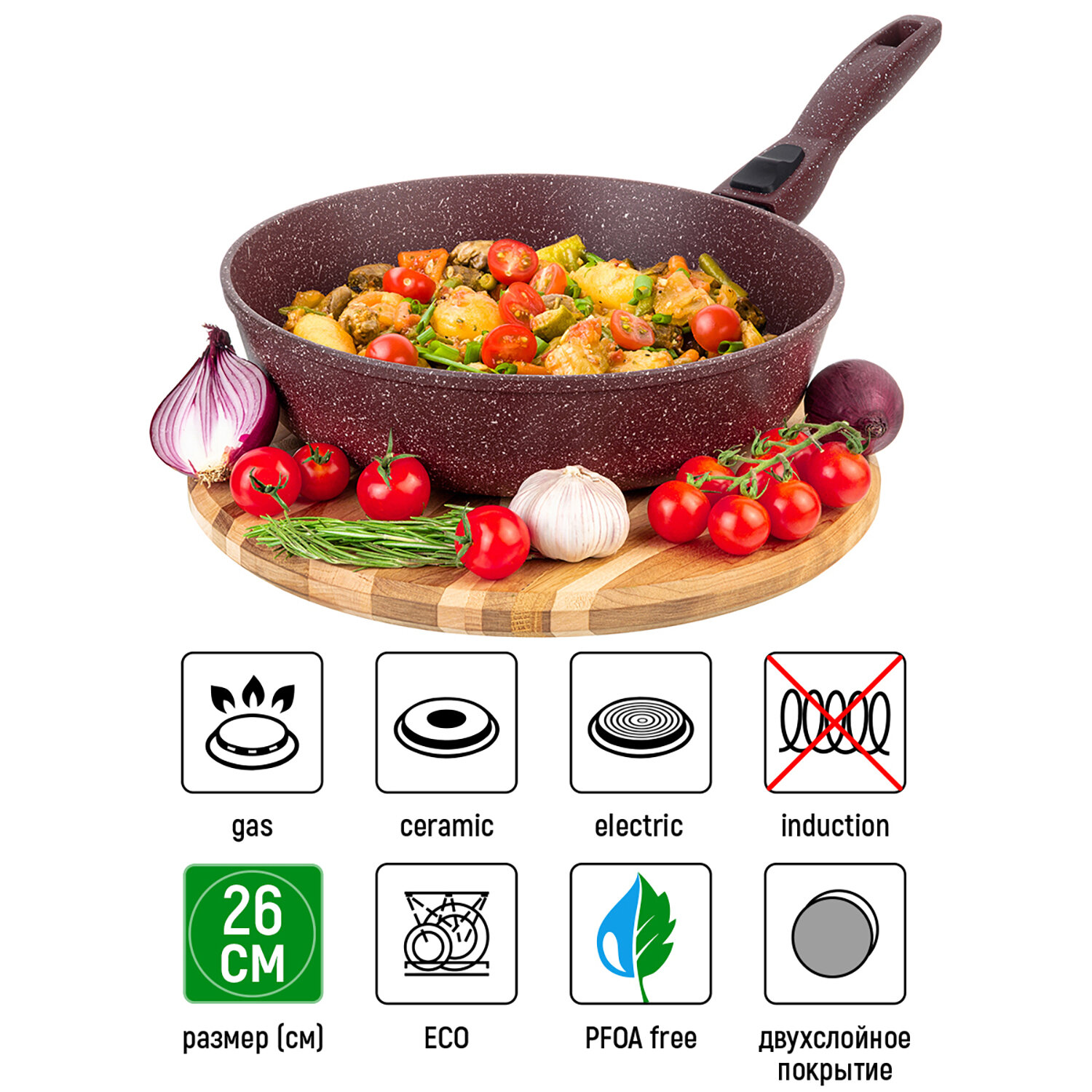 Сковорода глубокая 26 см Elan Gallery гармония вкуса Рубин, со съёмной ручкой интересное: