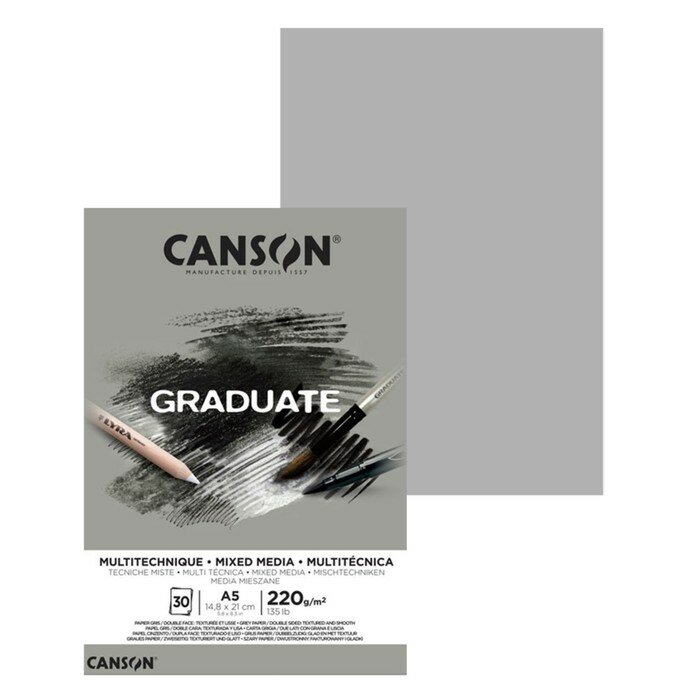 Купить Canson Склейка "Graduate", Mix media, по короткой, серый, 30л, A5, 220г/м2, среднезернистая sela25