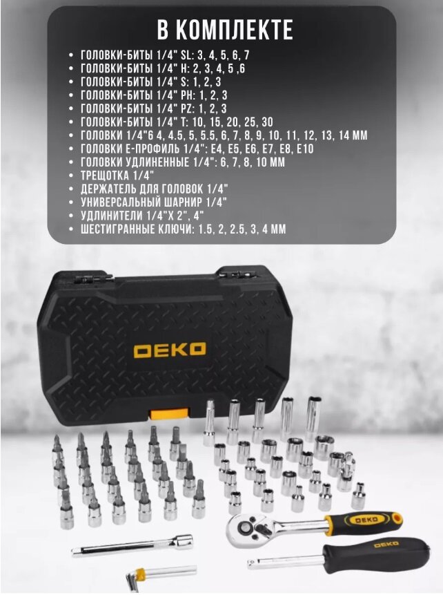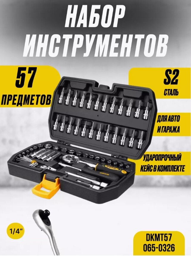 Для слесарных и ремонтных работ DEKO DKMT57, 57 предм, черный, 1 уп.