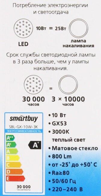 Лампа светодиодная Smartbuy SBL-GX-10W-3K интересное: