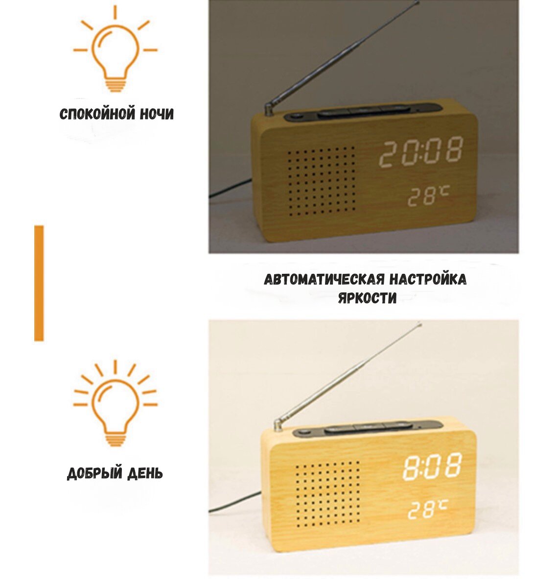 Заводские светодиодные цифровые деревянные часы радио-будильник MyPads Premium M153-558 идеальный бизнес подарок любимому мужчине отцу дедушке дя... интересное: