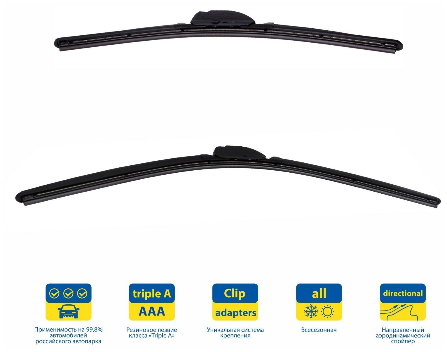 2 Щетки стеклоочистителя в комплекте (60+45 см), Дворники для автомобиля GOODYEAR для RENAULT Duster/Arkana/Megane 2, LADA Vesta, MAZDA6(12-)