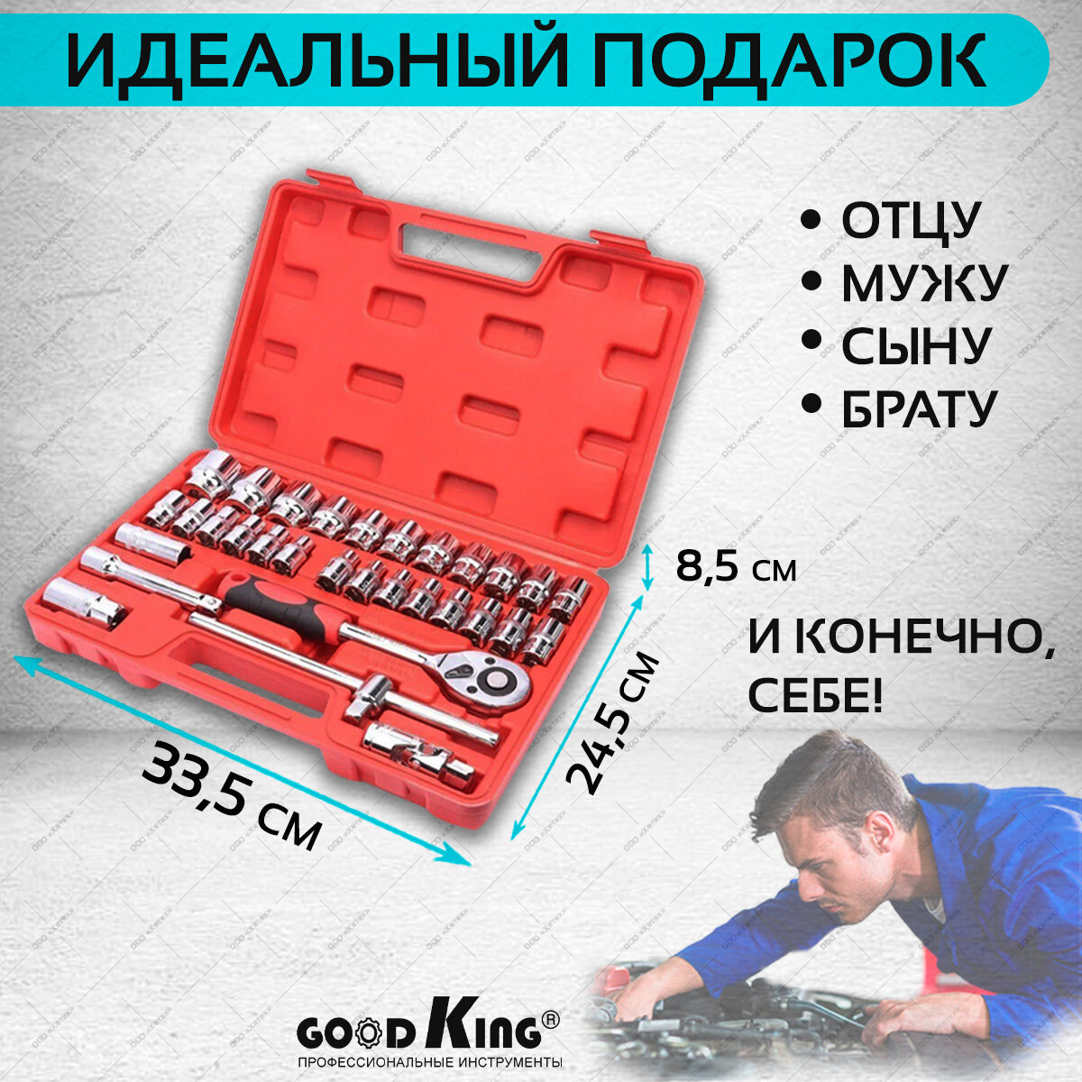 Набор инструментов 32 предмета 1/2" трещотка 24 зуба GOODKING K-10032 для автомобиля для дома, набор торцевых головок, трещоточный ключ интересное: