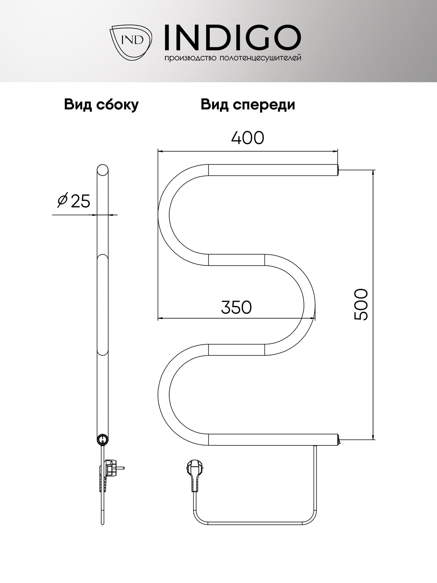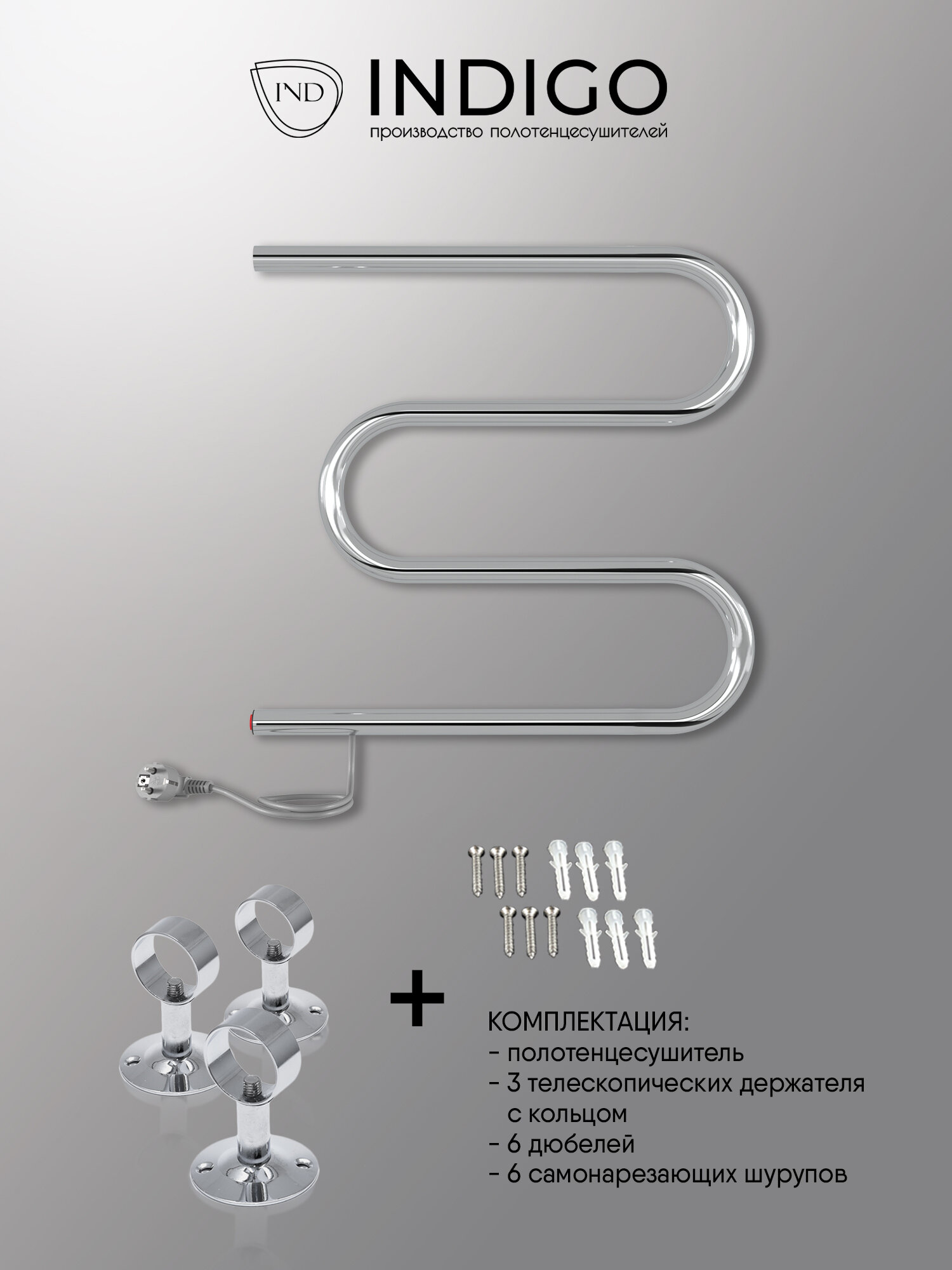 Полотенцесушитель электрический INDIGO М-образный 500*400 прямой провод, кнопка на коллекторе интересное: