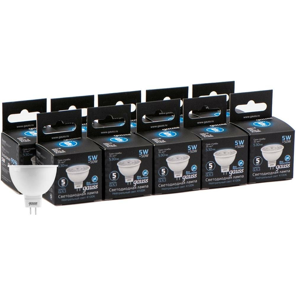 Купить Упаковка светодиодных ламп 10 шт Gauss MR16 5W 530lm 4100K GU5.3 LED 101505205