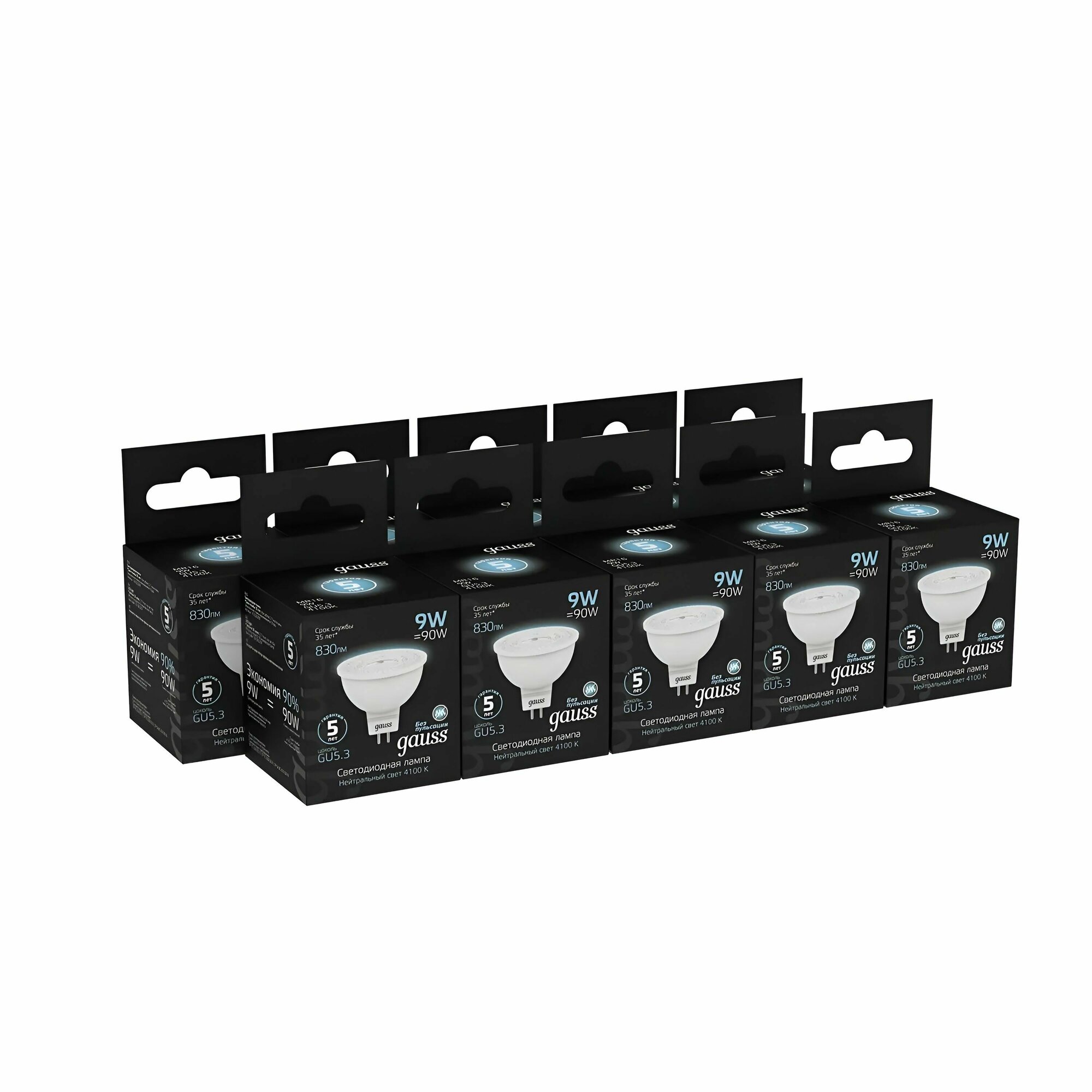 Упаковка светодиодных ламп 10 шт Gauss MR16 5W 530lm 4100K GU5.3 LED 101505205 интересное: