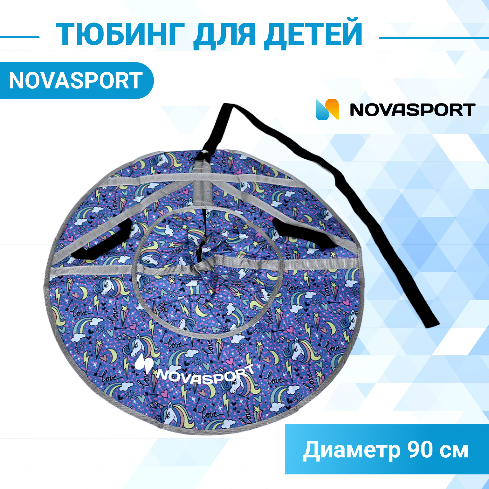 СохранитьСанки детские надувные ватрушка 90 см NovaSport Тюбинг ткань с рисунком без камеры CH030.090 серые единороги интересное: