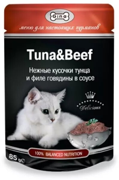 Корм Gina для кошек тунец и филе говядины 85 г интересное: