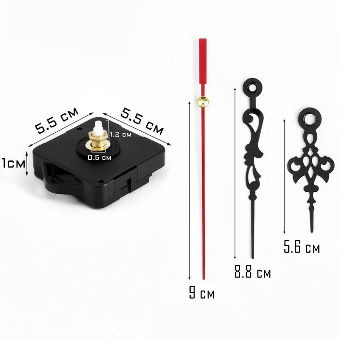 Часовой механизм со стрелками "Соломон-1", плавный ход, шток 12 мм, стрелки 58/87/90 мм