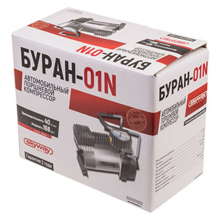 Компрессор авто БУРАН-01N Мощность 168 Вт, Давление 10Атм, Ток 14А, Напряжение 12В, Максимальная производительность 40 л/мин SKYWAY S02001003