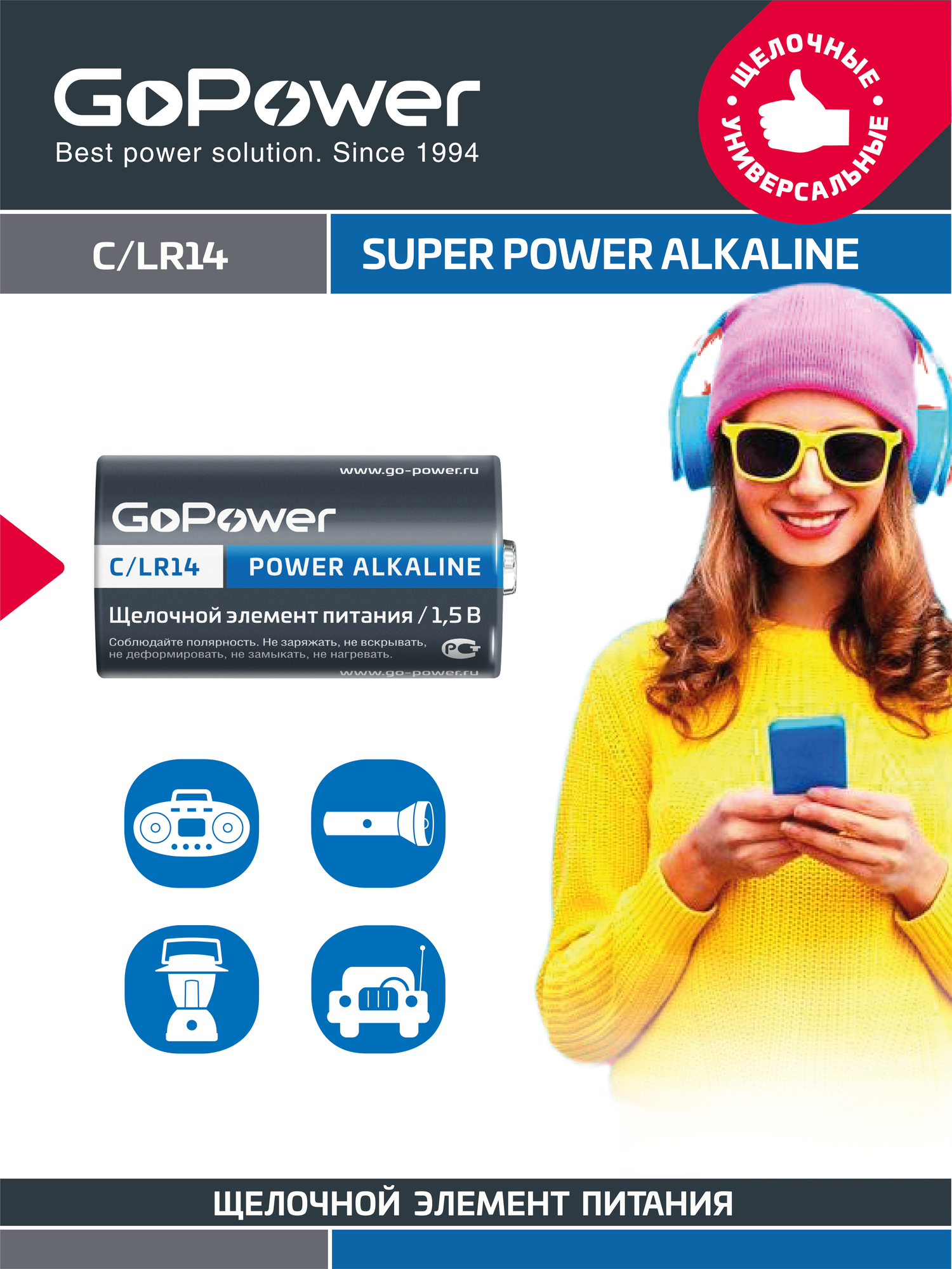 Гоу Паувер / Go Power - Батарейки Super Power Alkaline C/LR14 1,5V 2 шт интересное: