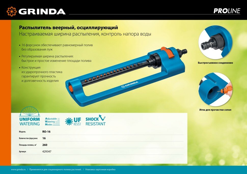 GRINDA PROLine RO-16, 260 м2 полив, 16 форсунок, распылитель веерный ( 429347 ) интересное: