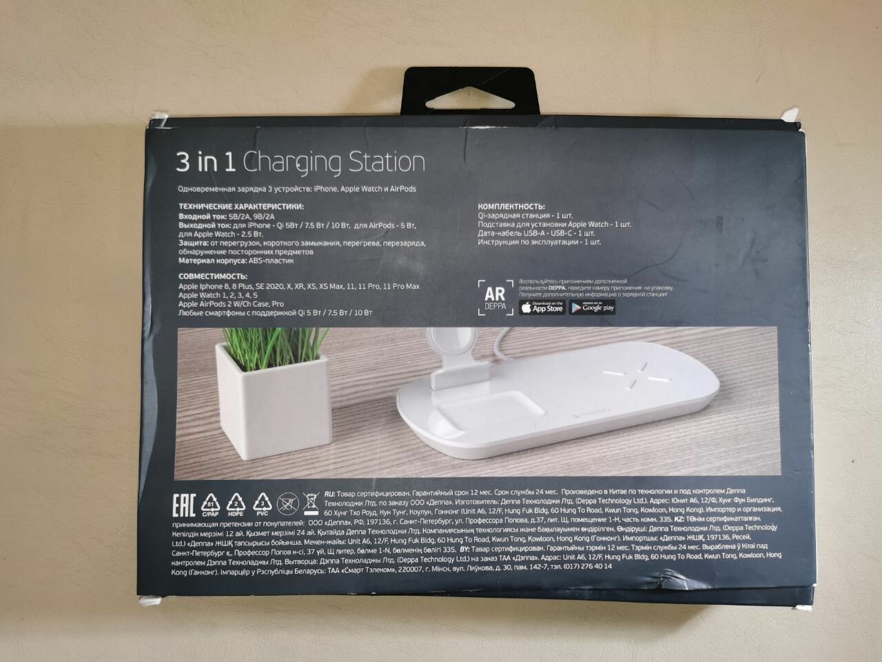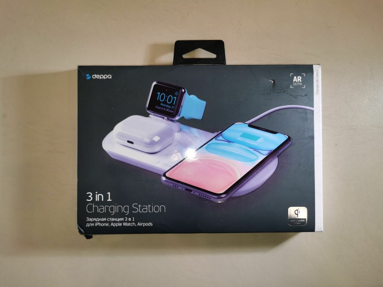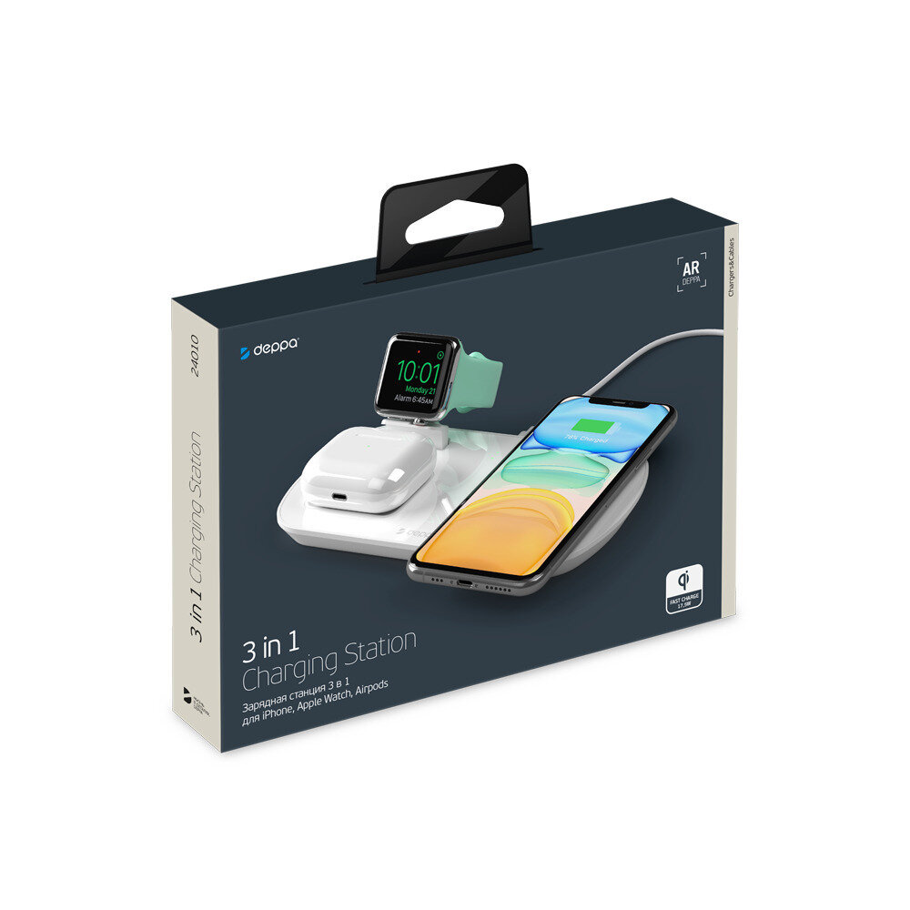 Зарядная станция 3 в 1: iPhone, Apple Watch, Airpods, беспроводная, 17,5 Вт, белая, крафт, Deppa 24010-OZ интересное: