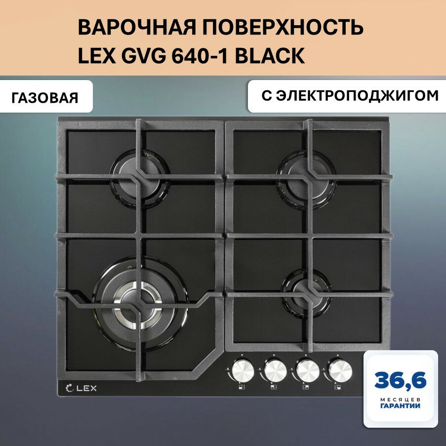 LEX Варочная поверхность LEX GVG 640-1 BL газовая, черная