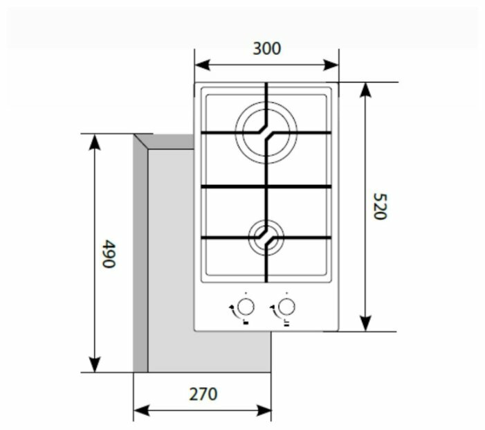 | Общее количество конфорок | 2 |