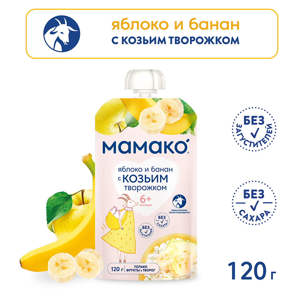Ниже Вы можете прочитать отзывы на Мамако - пюре яблоко, банан и козий творожок, 6 мес., 120гр, ознакомится с подробными характеристиками, посмотреть интересные обзоры и фотографии на Мамако - пюре яблоко, банан и козий творожок, 6 мес., 120гр.