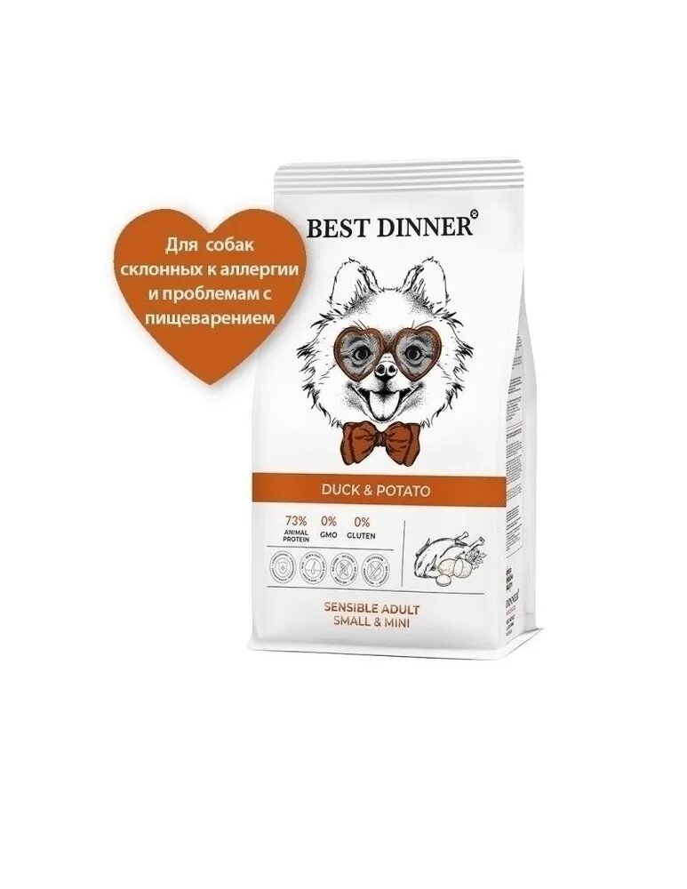 Best Dinner Adult Sensible Mini Duck & Potato сухой корм для собак мелких пород склонных к аллергии и проблемам с пищеварением с уткой и картофелем - 3 кг