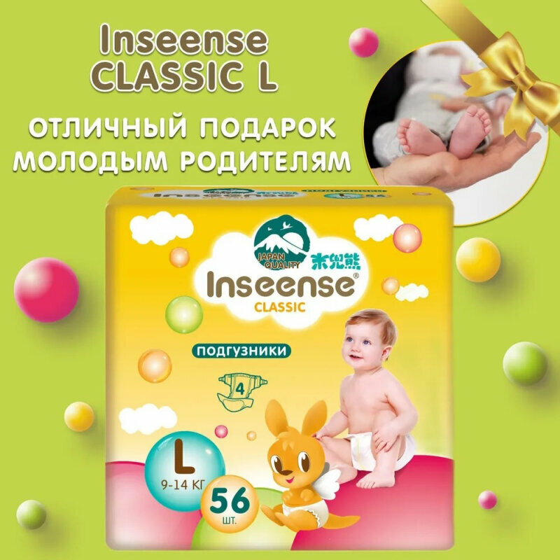 INSEENSE Подгузники Classic L 9-14 кг, 56 шт интересное: