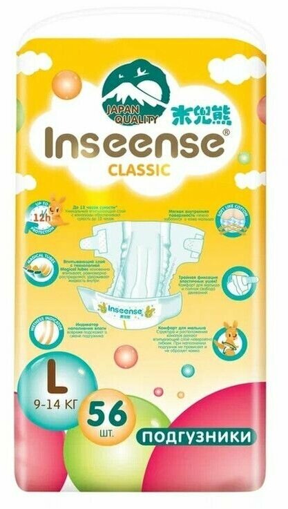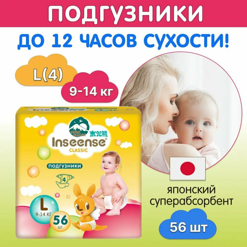 Подгузники INSEENSE Classic L 9-14 кг 56 шт