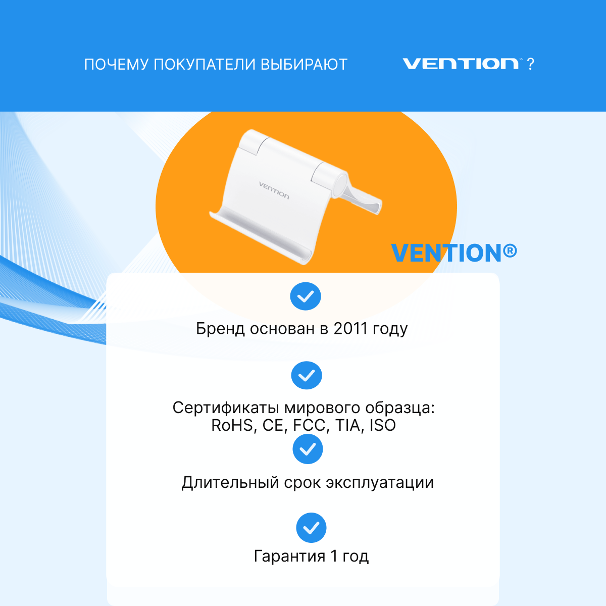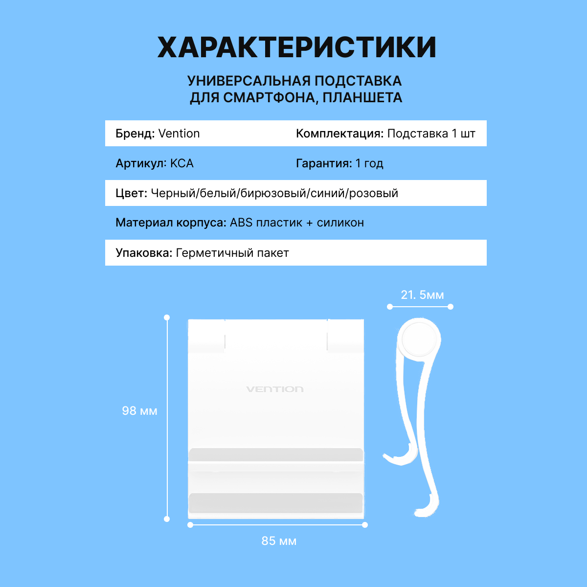 СохранитьVention Подставка для телефона ,смартфона, планшета ,настольная складная регулируемая, цвет Белая интересное:
