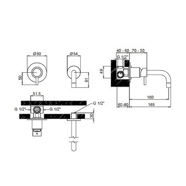 Смеситель для раковины настенный Margaroli Moderna Ru2002aa01cr хром .
