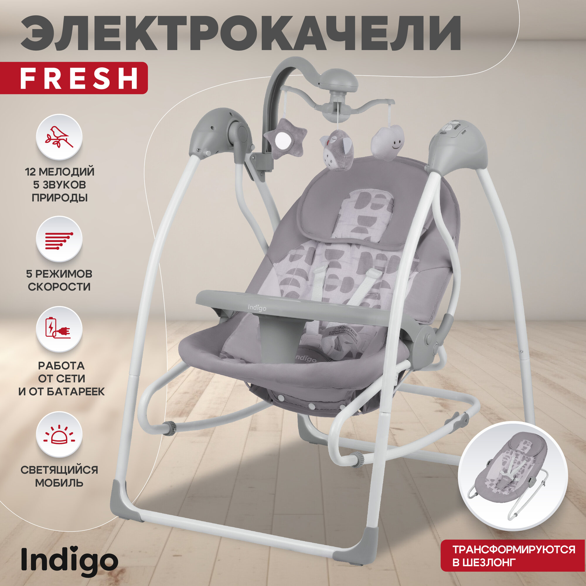 Купить Электрокачели шезлонг 2 в 1 Indigo FRESH, серый