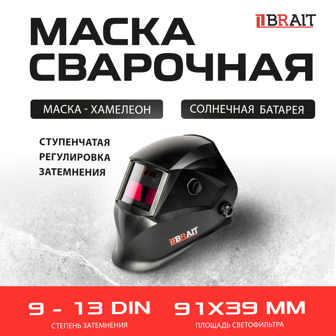 Маска сварочная BRAIT BR ST400, хамелеон 91*39 мм, 9-13DIN, сменный элемент питания (режим MMA) интересное: