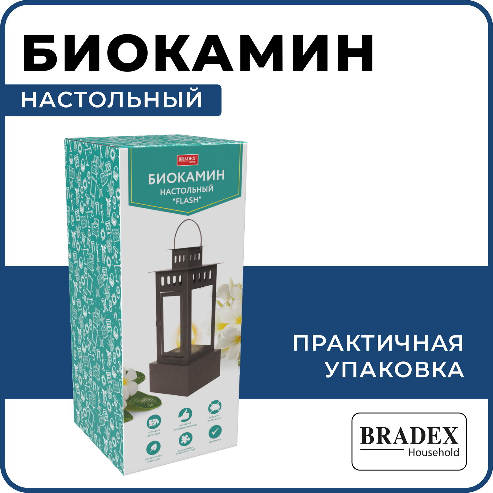Биокамин настольный для дома BRADEX "Flash" био камин декоративный со стеклянной колбой