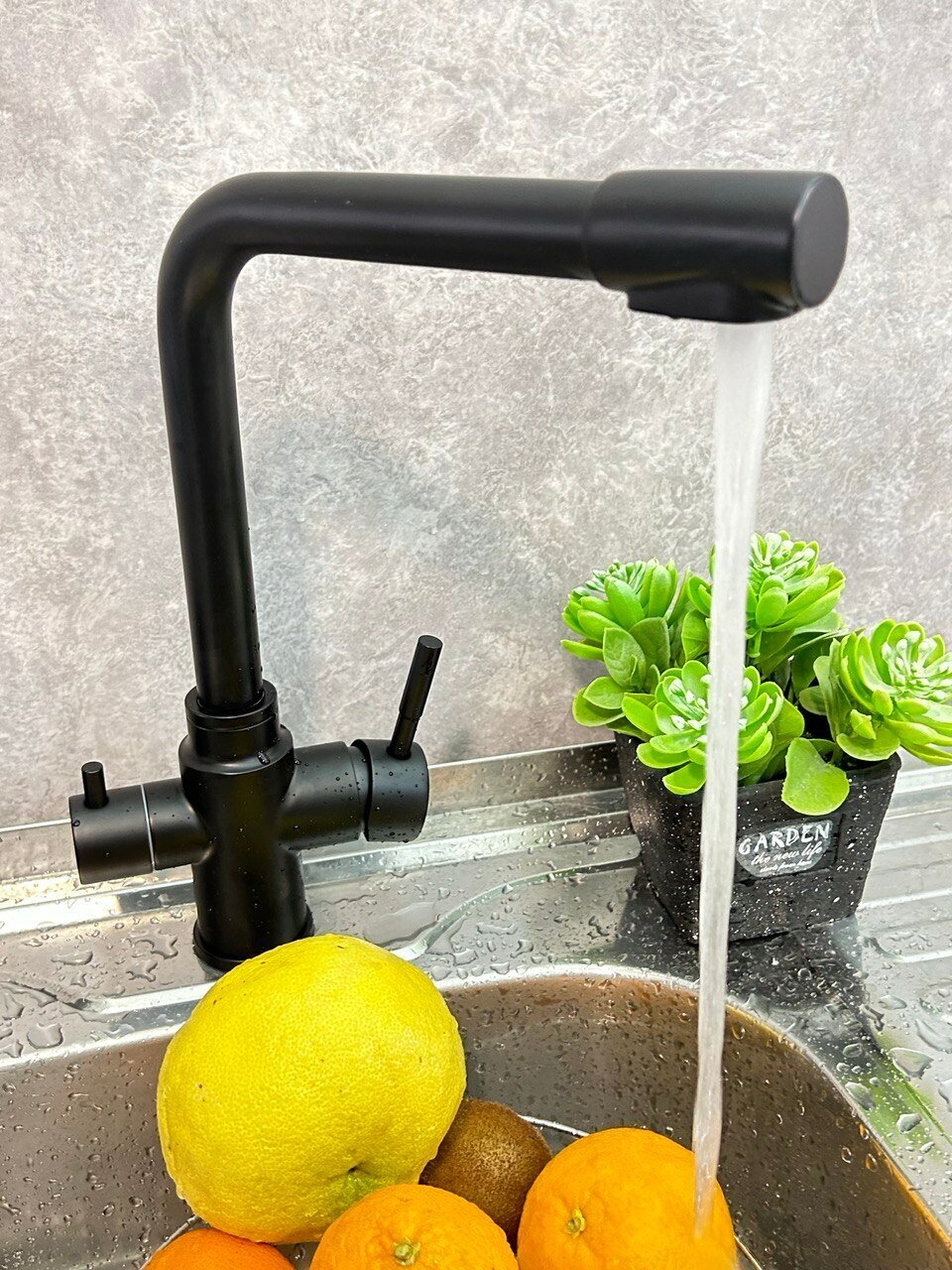 Смеситель для кухни HANSEN H15085 с подключением к фильтру питьевой воды, цвет черный
