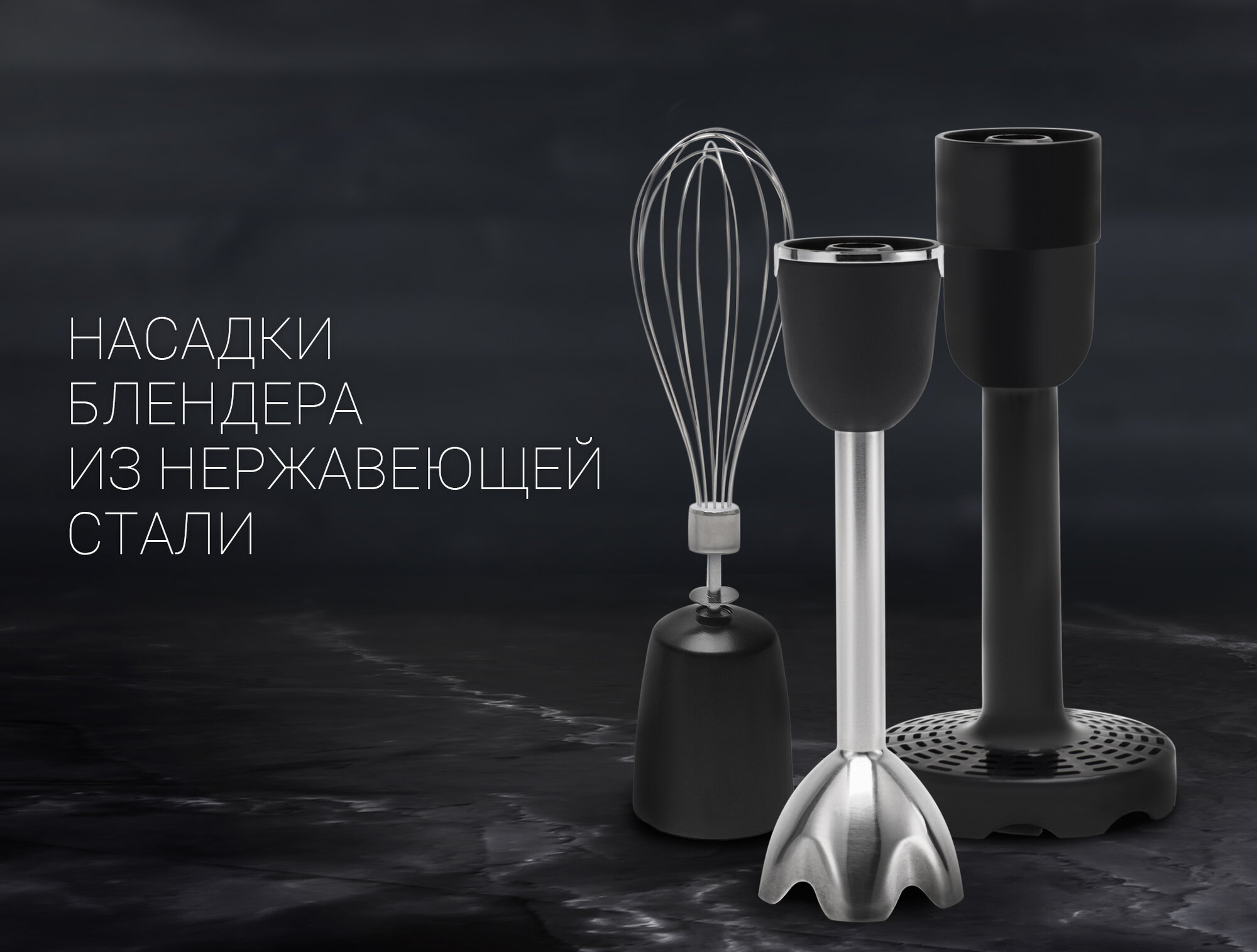 Комплект насадок очень удачный Блендер мощный Внешний вид лаконичный |