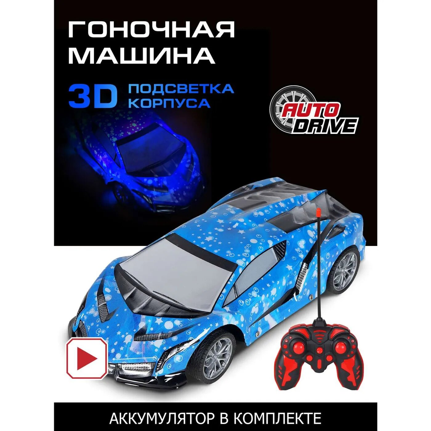 Машинка на радиоуправлении AUTODRIVE гоночная 1:14 с пультом 4 канала 27MHz 3D подсветка корпуса