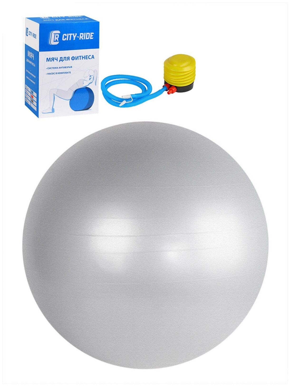 Купить Мяч гимнастический фитбол ТМ City-Ride, для фитнеса, 75 см, 1200 г, антивзрыв, насос, цвет серебристый