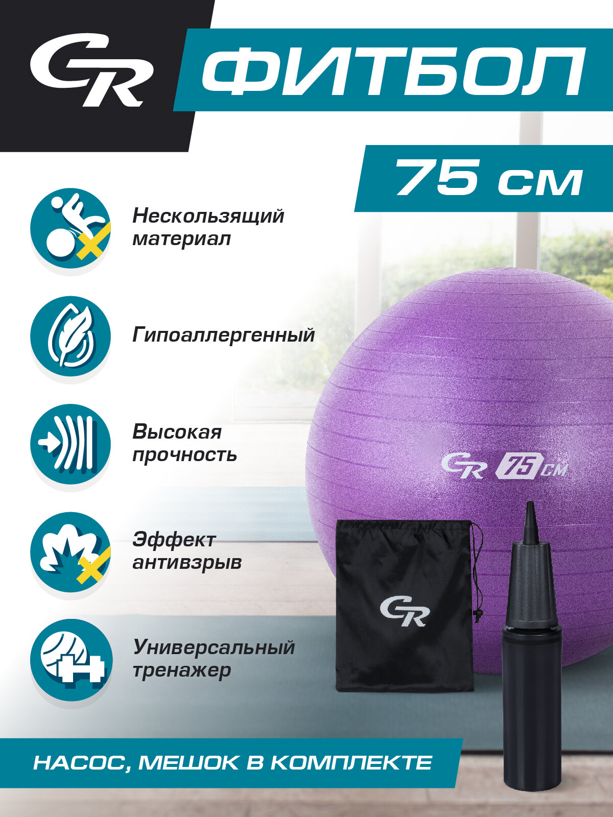 Купить Мяч гимнастический фитбол ТМ City-Ride, для фитнеса, 75 см, 1200 г, антивзрыв, насос, цвет лавандовый