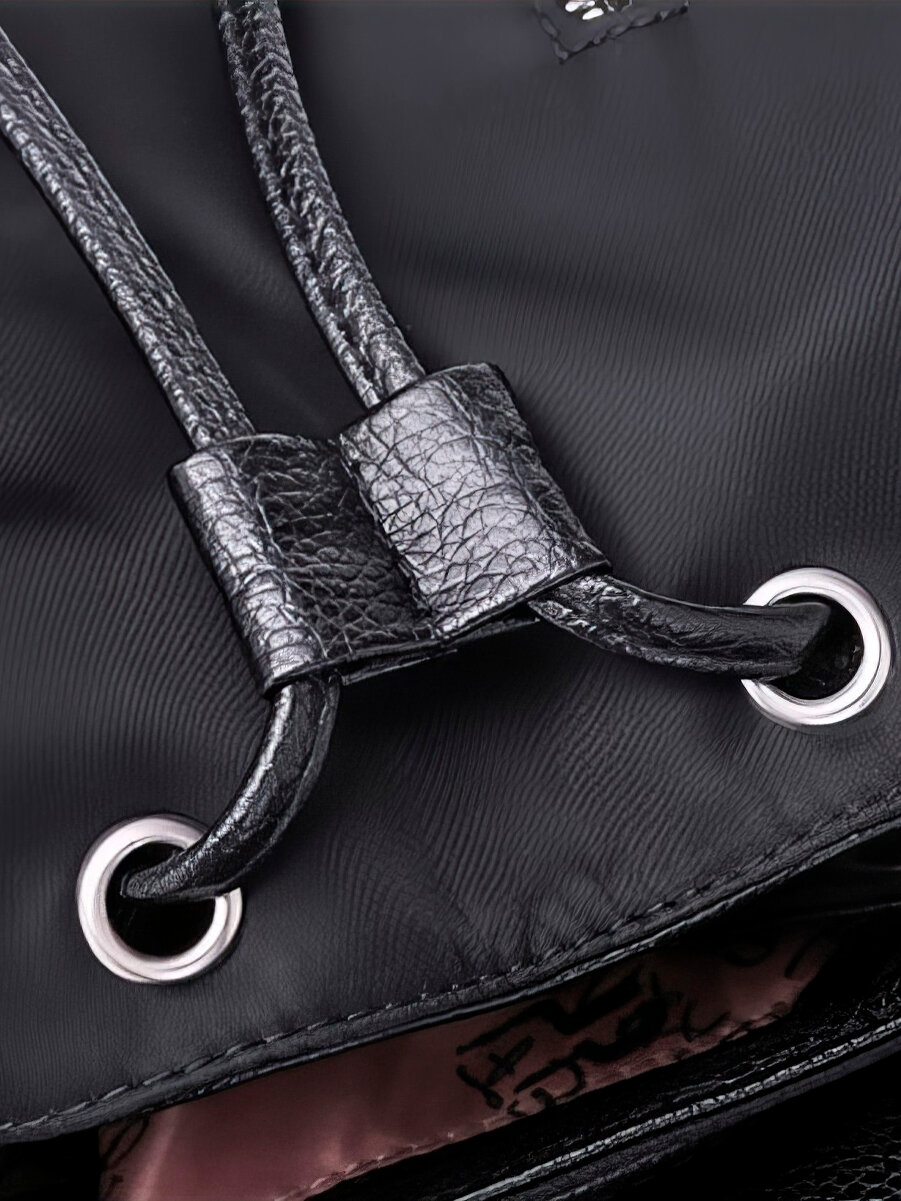 С "веревок", которые должны затягивать верх сумки, очень быстро слетела фурнитура, тк шапки саморезов внутри колпачков чуть меньше дырок, так что саморезы просто провалились при небольшом (первом) давлении.