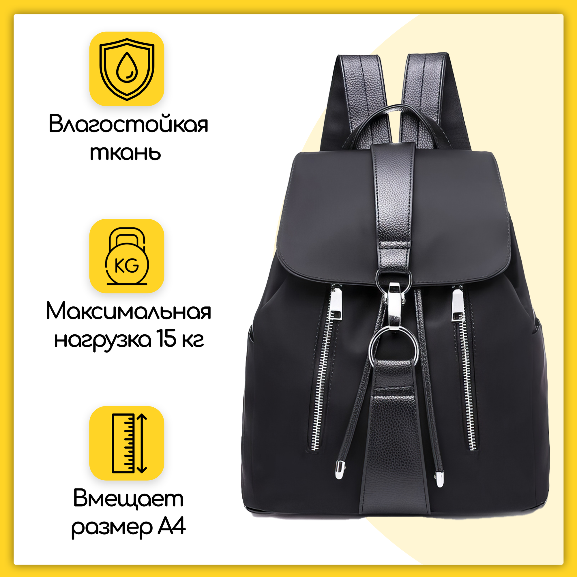 Рюкзак женский городской URM, 12 л, со вставками из экокожи, черный интересное: