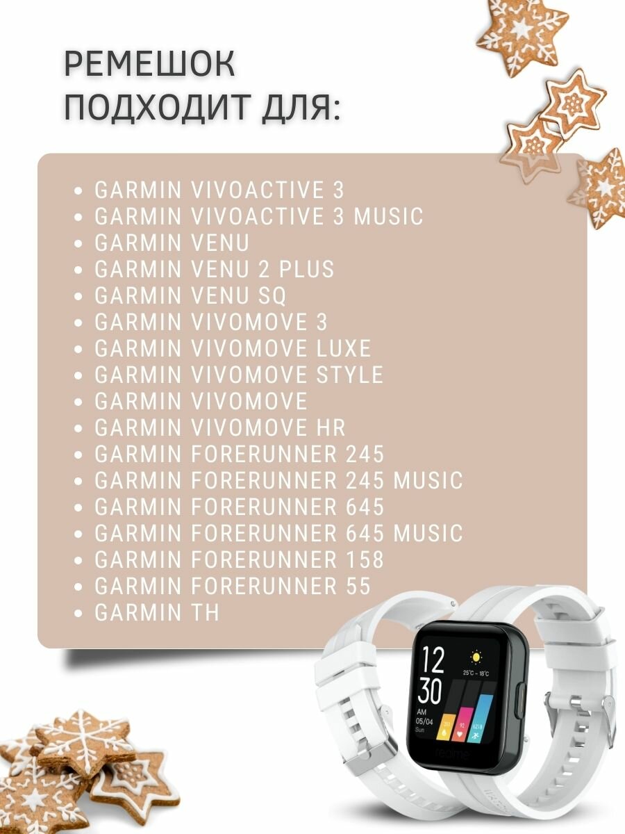 СохранитьCиликоновый ремешок PADDA серебристая застежка для смарт-часов Garmin (ширина 20 мм), White интересное: