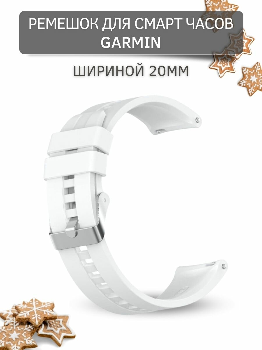 Купить Cиликоновый ремешок PADDA серебристая застежка для смарт-часов Garmin (ширина 20 мм), White