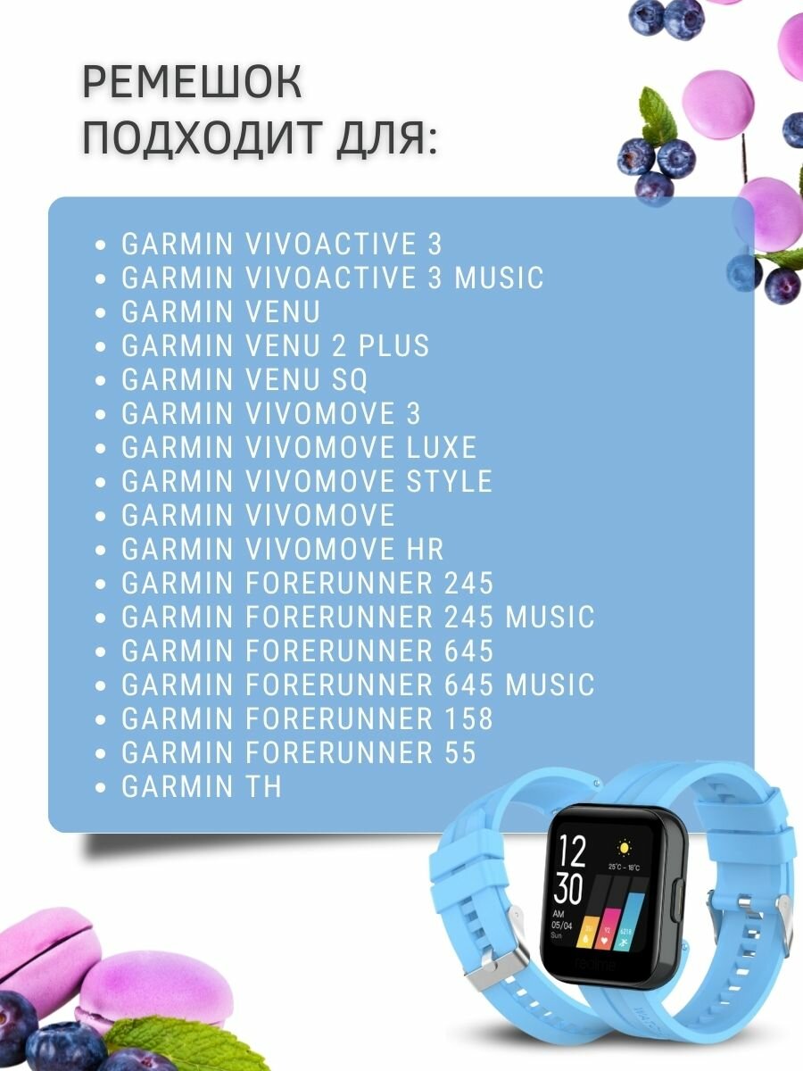 СохранитьCиликоновый ремешок PADDA серебристая застежка для смарт-часов Garmin (ширина 20 мм), Sky Blue интересное:
