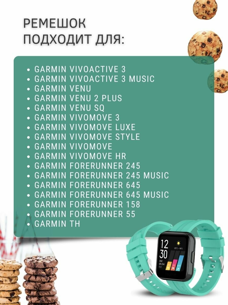 | Совместимость | Garmin Forerunner 245 / Garmin Forerunner 245 music / Garmin Forerunner 645 / Garmin Venu / Garmin Venu Sq / Garmin Vivoactive 3 / Garmin Vivoactive 3 Music / Garmin Vivomove 3 / Garmin Vivomove HR / Garmin Vivomove Luxe / Garmin Vivomove Style / Garmin Move 3 / Garmin Move Luxe / Garmin Move style / Garmin Vivomove |