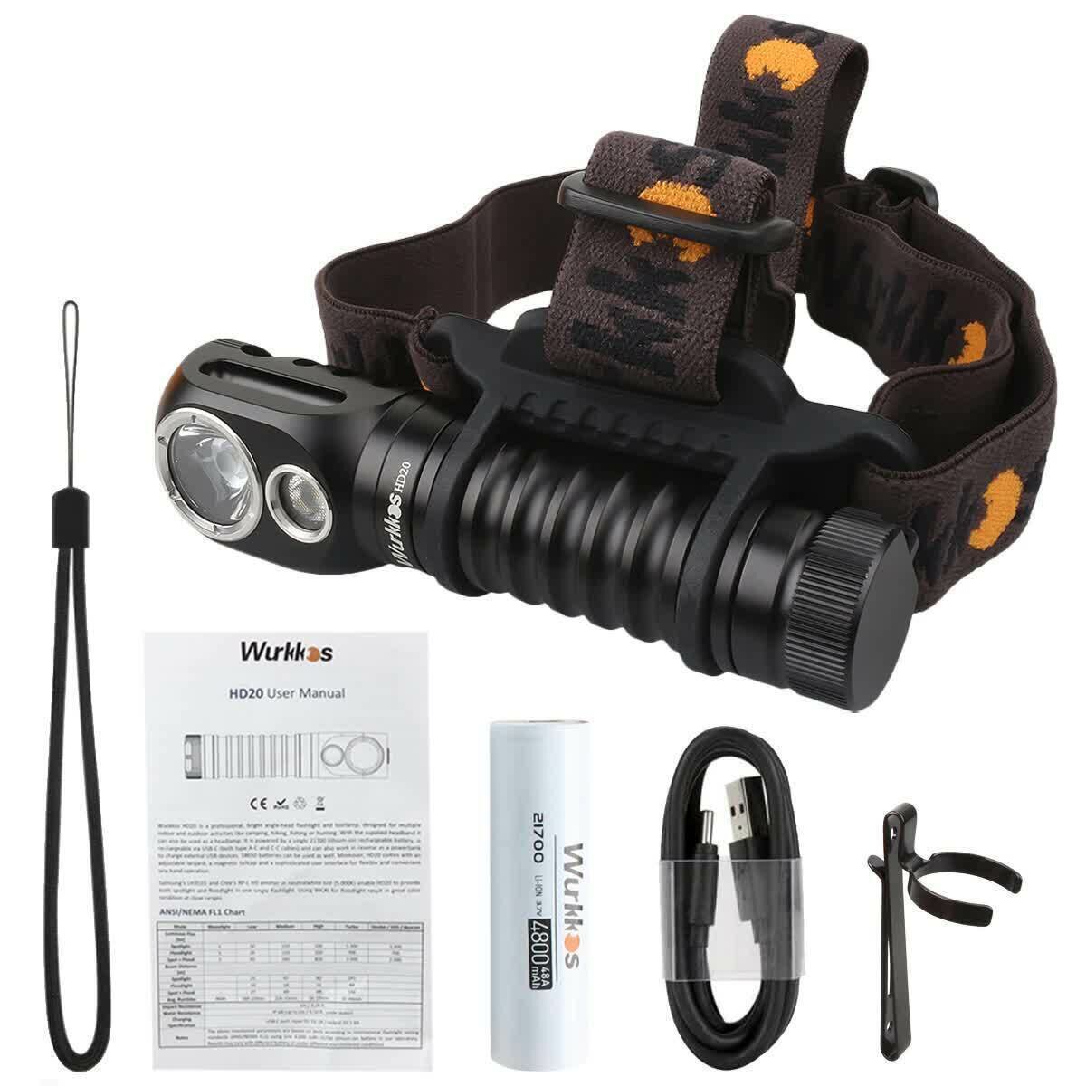 Налобный фонарь Wurkkos HD20 2000-Люмен, 5000K (комплект с аккумулятором 21700 Li-Ion)