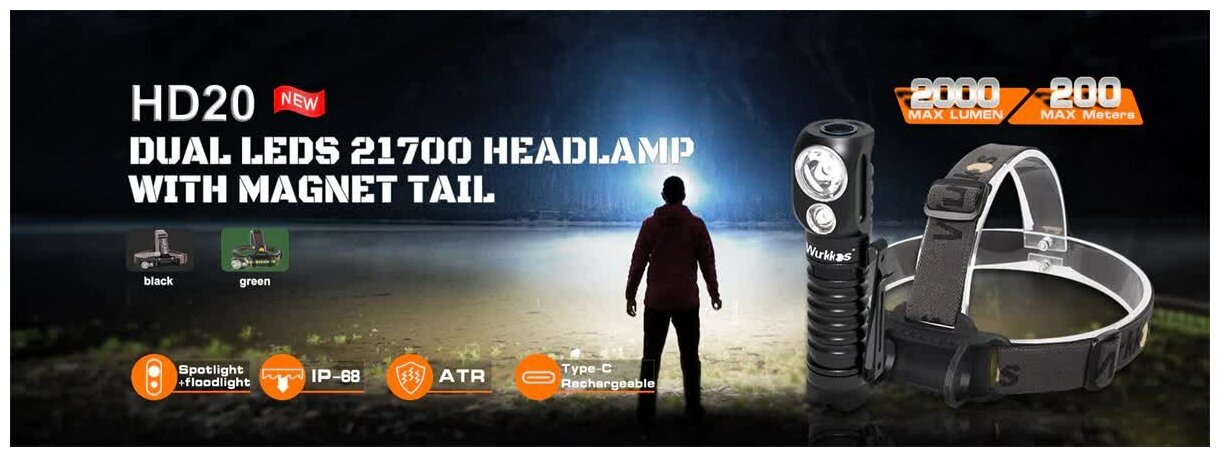 Налобный фонарь Wurkkos HD20 Black интересное:
