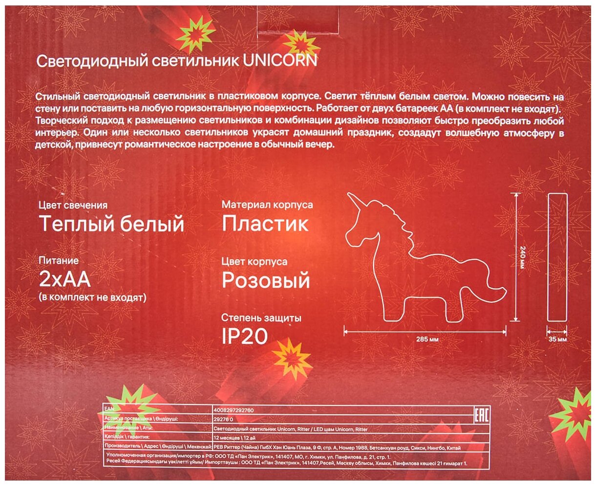 Настольная лампа Ritter LED Unicorn 2хАА, теплый свет интересное: