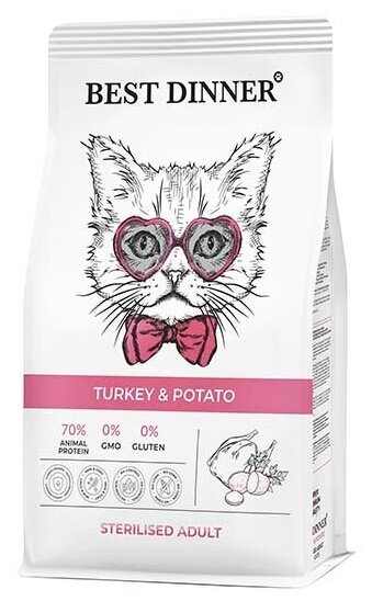 Best Dinner Adult Sterilised Turkey & Potato сухой корм для кастрированных и стерилизованных кошек склонных к аллергии и проблемам с пищеварением с индейкой и картофелем 1,5 кг
