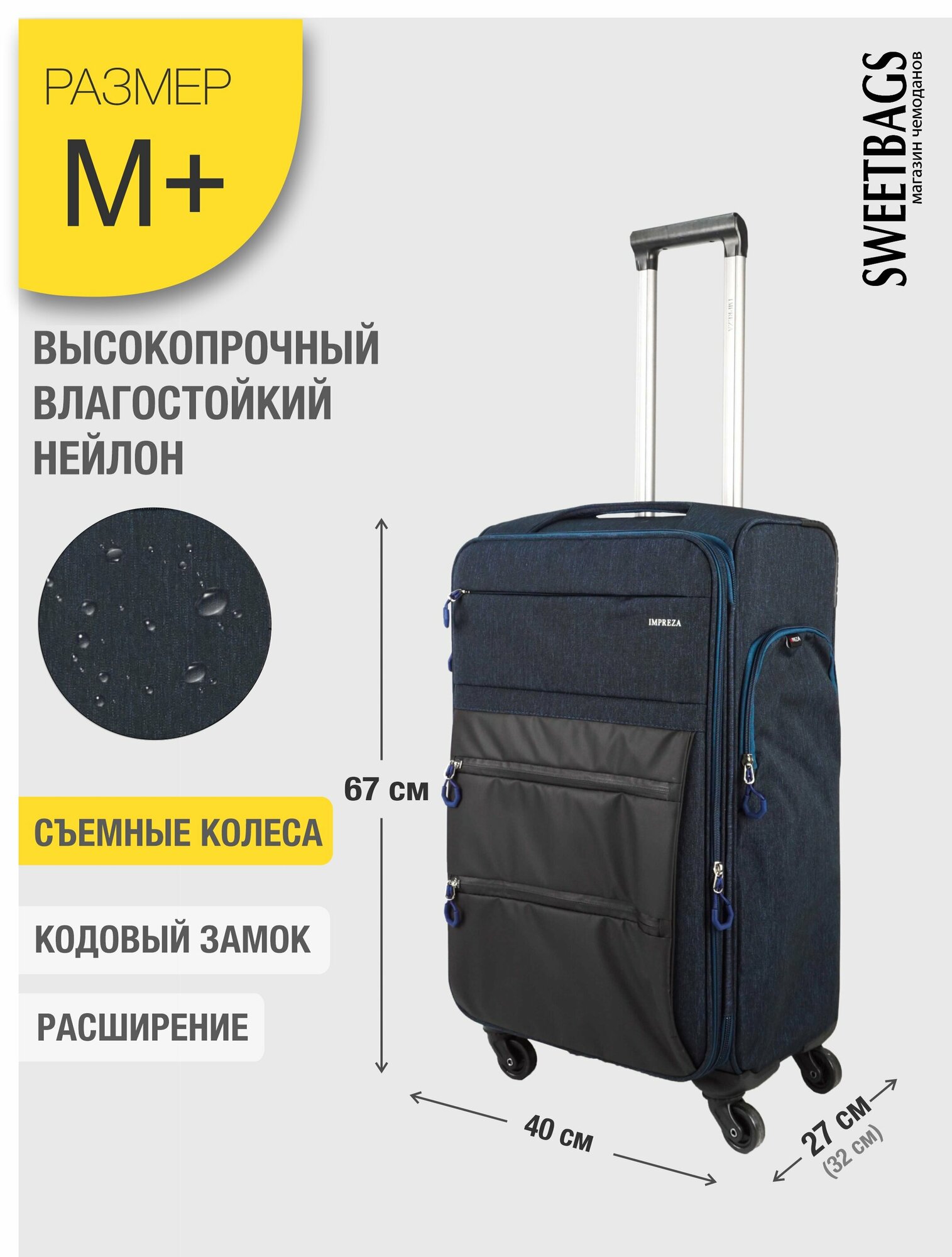 Купить Чемодан Sweetbags текстильный средний с 4 съемными колесами и расширением (waterproof) темно-синий M+