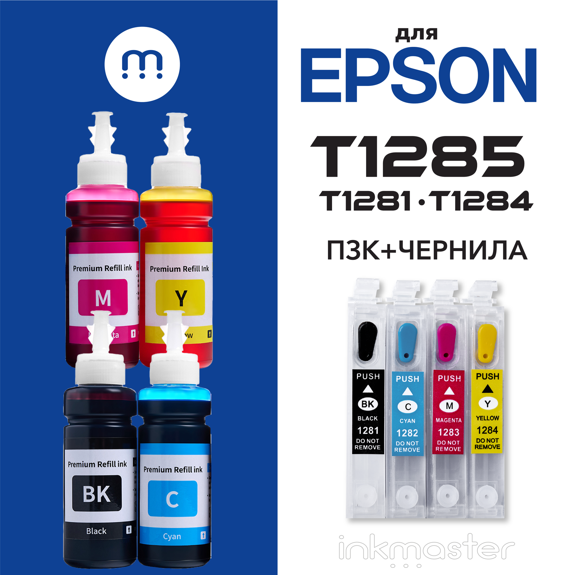 Купить Перезаправляемые картриджи ПЗК T1285 (T1281-T1284) с комплектом чернил для Epson Stylus S22, SX125, SX130, SX230, SX235 и др., с авто-чипами, 4 цвета